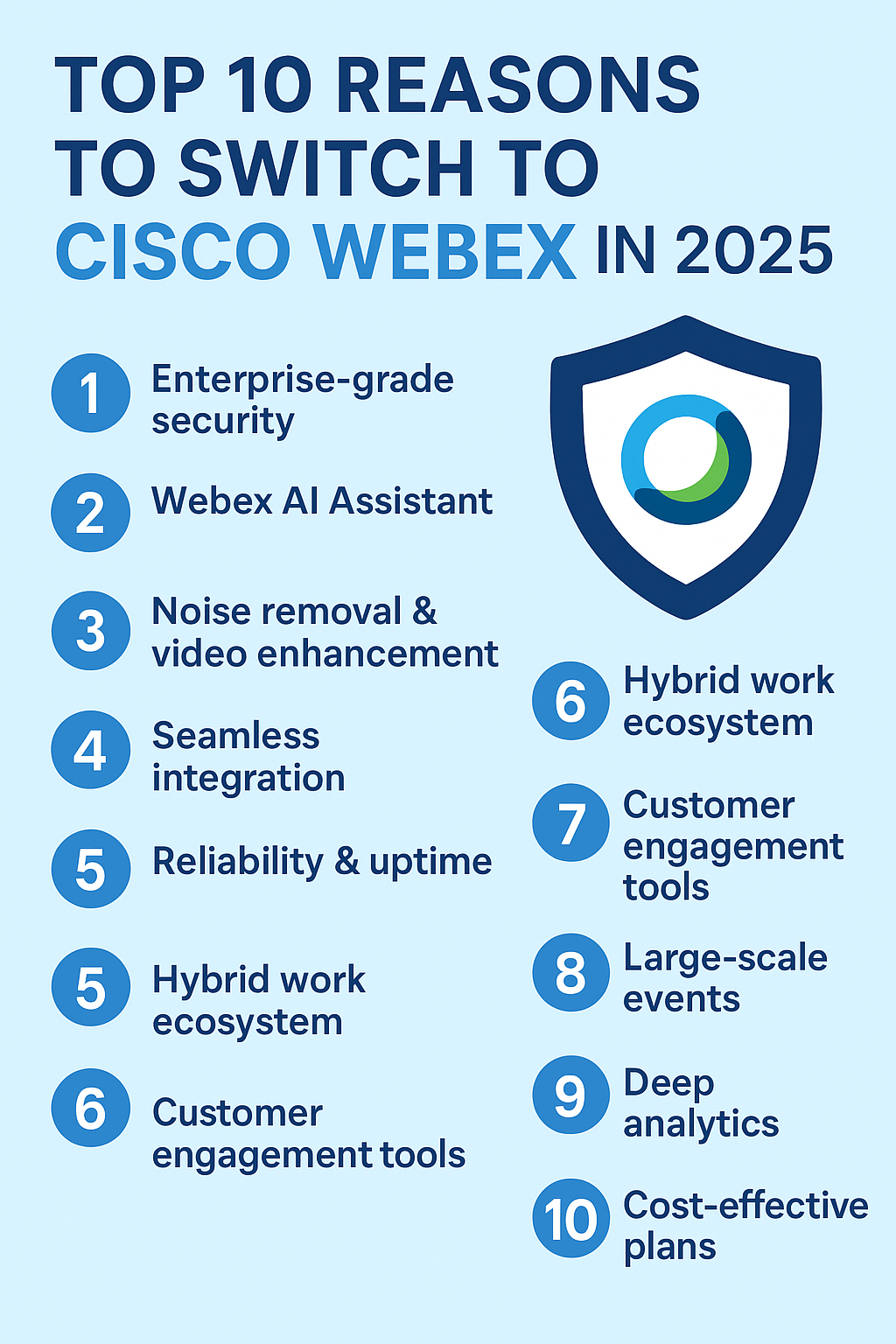 If you’re wondering whether it’s finally time to switch to Webex, this guide breaks down the top 10 reasons why businesses are choosing it in 2025—and why your team might want to consider the move too.